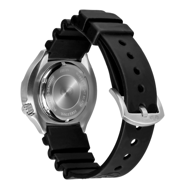 - Einseitig rastbare Lünette mit 60 Klicks, auch mit Taucherhandschuhen bedienbar