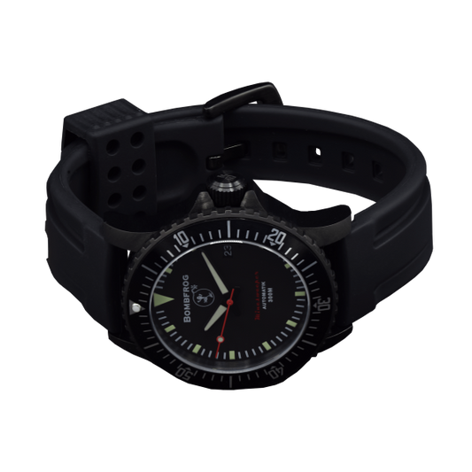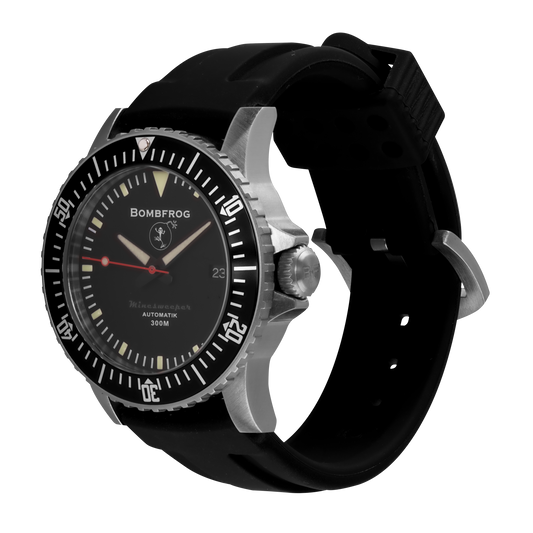 Die Bombfrog Minesweeper ist mehr als nur eine Taucheruhr – sie ist ein Präzisionsinstrument für alle, die das Außergewöhnliche suchen. Ursprünglich für Minentaucher und Kampfmittelbeseitiger entwickelt, begeistert sie heute Profis, Outdoor-Enthusiasten und modebewusste Individualisten gleichermaßen.