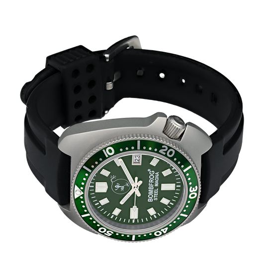Die BOMBFROG® Steel Magna ist die perfekte Wahl für Uhrenliebhaber, die eine zuverlässige und einzigartige Uhr suchen. Mit ihrem unverwechselbaren Vintage Turtle Design und höchster Qualität überzeugt sie in jeder Situation.