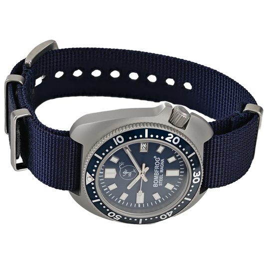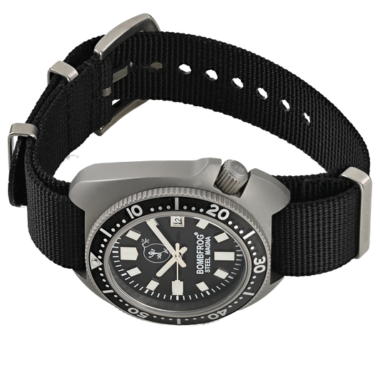 Entdecken Sie selbst die außergewöhnliche Kombination aus Vintage-Charme und moderner Funktionalität der BOMBFROG® Steel Magna und erleben Sie eine Uhr, die in puncto Stil und Zuverlässigkeit neue Maßstäbe setzt.